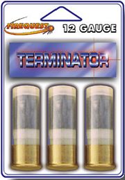 The lethality contained within the hollow core slug of our terminator 12 GA almost can't be advertised. Upon impact, this slug mushrooms and expands to nearly two inches, stopping the slug from totally penetrating your objective. This rapid expansion forces the dozen of tiny pellets to spread through your objective like a cancerous disease, opening an area at the impact point equal to a softball. The cavity created has the shock effect of 95%. That means only 5% of any living being could survive this kind of hit. 2 3/4" round