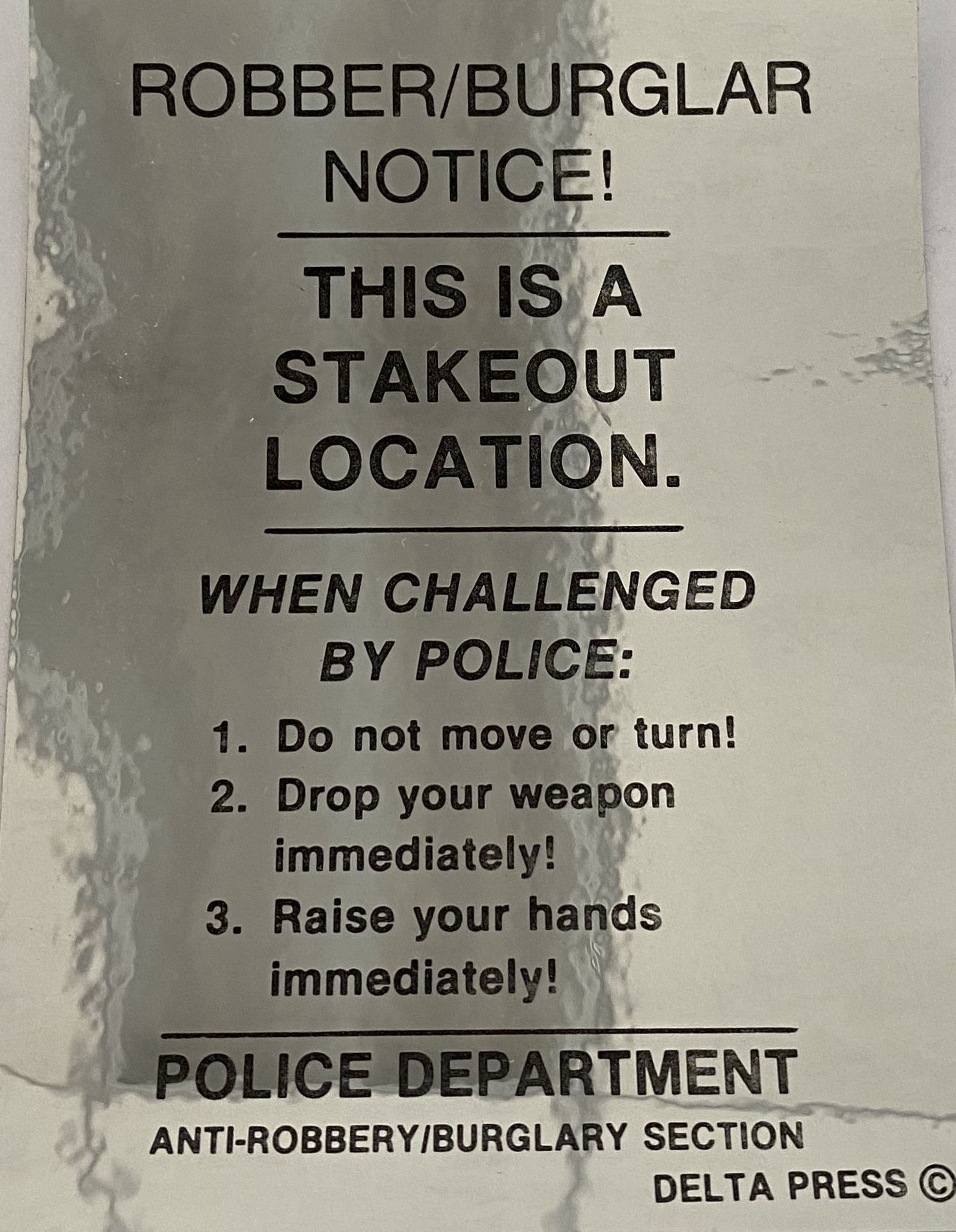 Robber/Burglar Notice (Sticker)